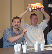 Activities: Two contests were marked for the "players" or just the extreme lucky "non-players". A special office team-building exercise game was designed and executed with awards the next day at a BBQ lunch attended by the whole company. A slide show of the year's events run in the background.